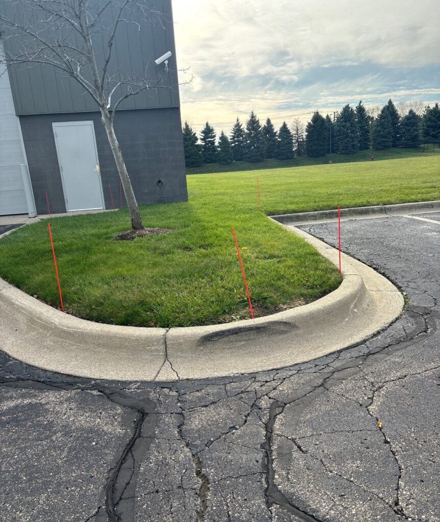 Before the snow arrives, our first step is installing snow stake markers to clearly outline your property. This precaution helps prevent any potential damage during service.